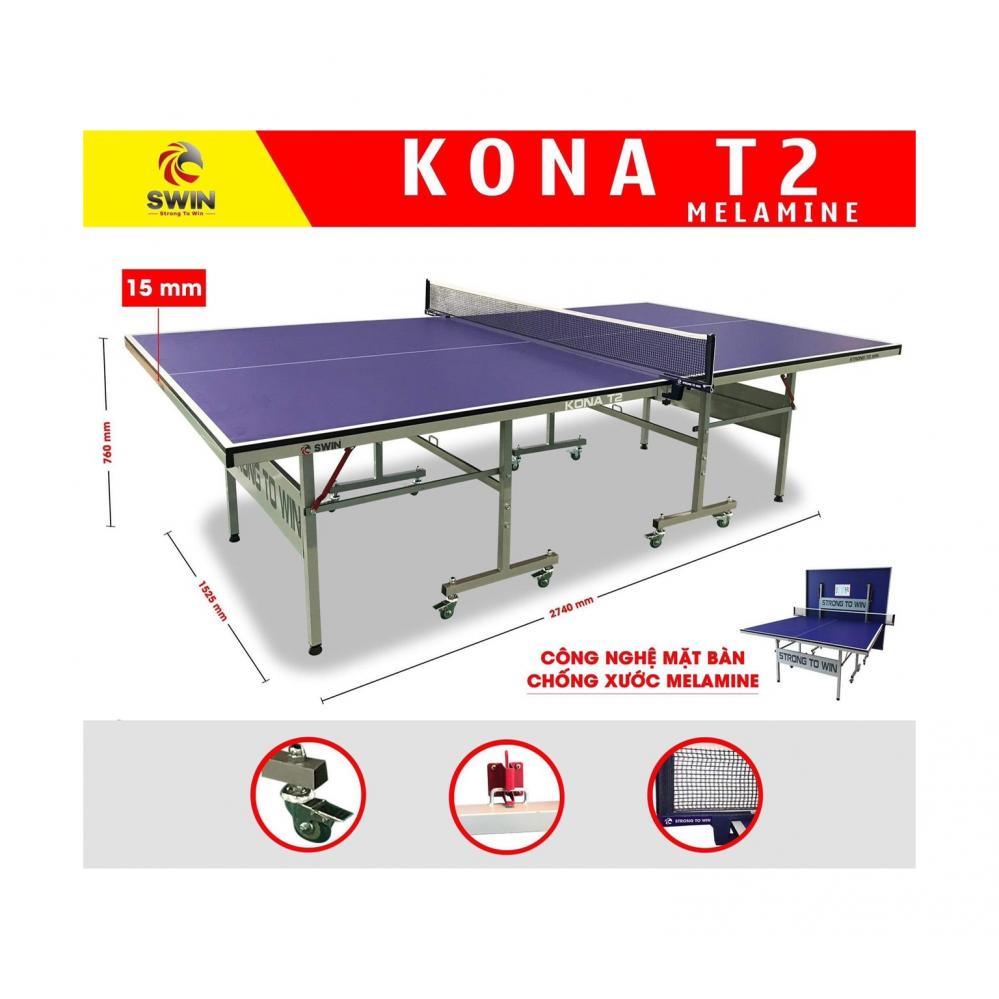 Bàn Swin Kona T2 có độ dày 15mm. Bàn có độ nảy ổn định. Gấp xếp lên dễ dàng. Bàn rẻ tiền nhưng được nhiều gia đình và chung cư sử dụng.