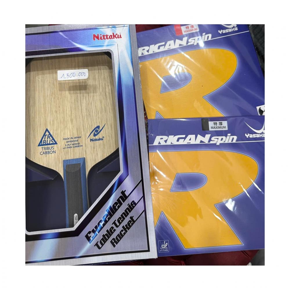 Là sự kết hợp giữa dòng vợt Nittaku của Nhật và mặt vợt Rigan Spin của Yasaka Nhật mà làm tại Đức. Cốt vợt Nittaku Tribus Carbon là sản phẩm carbon đầu tiên của Nittaku cho phép người chơi lựa chọn theo màu sắc cán vợt, với ba phiên bản màu xanh dương, đỏ và xám. Cấu trúc của vợt bao gồm 5 lớp gỗ kết hợp với 2 lớp carbon siêu mỏng, tạo nên độ dày tổng thể 6,4 mm. Thiết kế này giúp vợt đạt tốc độ trung bình nhanh, mang lại cảm giác cứng cáp và ổn định trong các pha tấn công lẫn phòng thủ. Việc sử dụng lớp carbon siêu mỏng và nhẹ giúp duy trì cảm giác bóng tự nhiên như vợt gỗ, đồng thời tăng cường hiệu suất kiểm soát trên toàn bộ bề mặt vợt. Sản phẩm được sản xuất tại Nhật Bản, đảm bảo chất lượng cao cấp và độ bền vượt trội. Với trọng lượng khoảng 85 gram, Nittaku Tribus Carbon là lựa chọn lý tưởng cho những người chơi muốn nâng cao trình độ, tìm kiếm sự cân bằng giữa tốc độ và kiểm soát trong lối chơi của mình.
