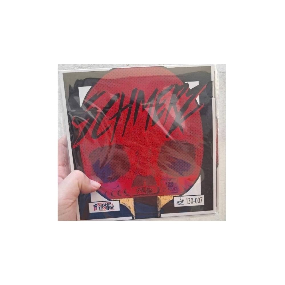 Sauer & Tröger Schmerz là loại cao su gai dài chuyên dụng được thiết kế cho người đánh gai trong bóng bàn, được biết đến với hiệu ứng phá vỡ cao và dễ chơi tấn công. Nó phổ biến trong số những người chơi phòng thủ cũng thích tham gia vào các cuộc tấn công thỉnh thoảng. Cao su nổi bật nhờ cấu trúc nút nhỏ gọn, gai mỏng và độ cứng cao su linh hoạt. Những đặc điểm này cho phép kiểm soát mạnh mẽ, đặc biệt là trong các cú đánh phòng thủ như chặn và cắt, đồng thời cho phép các cuộc tấn công xoáy lên hiệu quả. Sự sắp xếp nhỏ gọn của các gai giúp gai trả bóng rất dị, mang lại sự trả bóng nhất quán ngay cả khi người chơi không ở vị trí tối ưu. Ngoài ra, lớp trên cùng mềm mại của cao su Schmerz giúp tăng cường tạo xoáy, khiến nó trở thành lựa chọn tuyệt vời cho người chơi phòng thủ, tấn công bất ngờ.