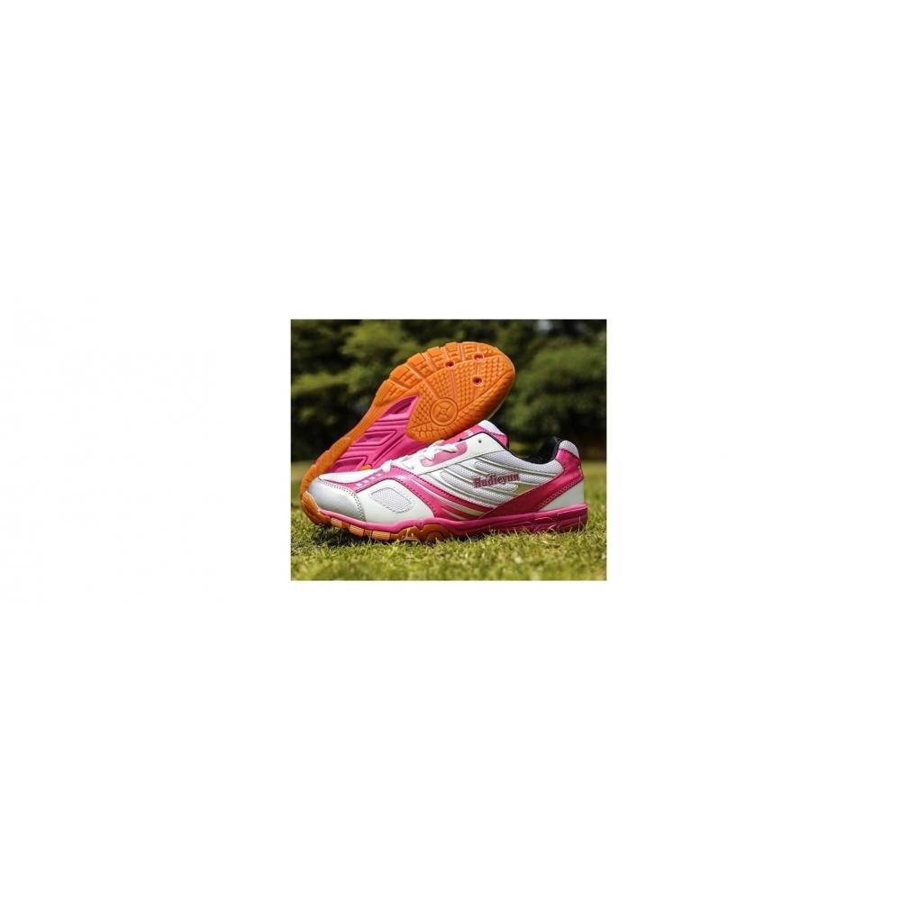 Giày bóng bàn nữ thương hiệu Hudieyun, một thương hiệu giày nổi tiếng bên Trung Quốc. Giày rất êm giúp cho người mang không bị đau gót. Đế giày có đồng tiền giúp cho giày mang bám hơn, ngoài ra đế giày có 3 lỗ thông hơi giúp cho giày thông thoáng hơi hạn chế mùi trong đôi giày, đế giày được thiết kế chống lật semi. Đế giày có cái răng cưa chống trơn trượt tự tin hơn di chuyển. Lót giày Hudieyun rất êm. Ưu điểm nổi bật của giày này là nhẹ, so với các giày khác thì giày này có trọng lượng nhẹ hơn rất nhiều. Giày còn có thêm một ưu điểm mà nhiều người khen là rất ôm chân. Với tầm giá này thì giày có thể nói là rất ok trong tầm giá. Nữ nên có giày dành riêng thiết kế riêng cho nữ. Hãy ghé Dung Bóng Bàn để chọn cho mình một đôi giày dành riêng cho nữ này. Đây là giày bóng bàn siêu nhẹ. Đây được xem là giày nữ bán chạy nhất tại cửa hàng Dung Bóng Bàn