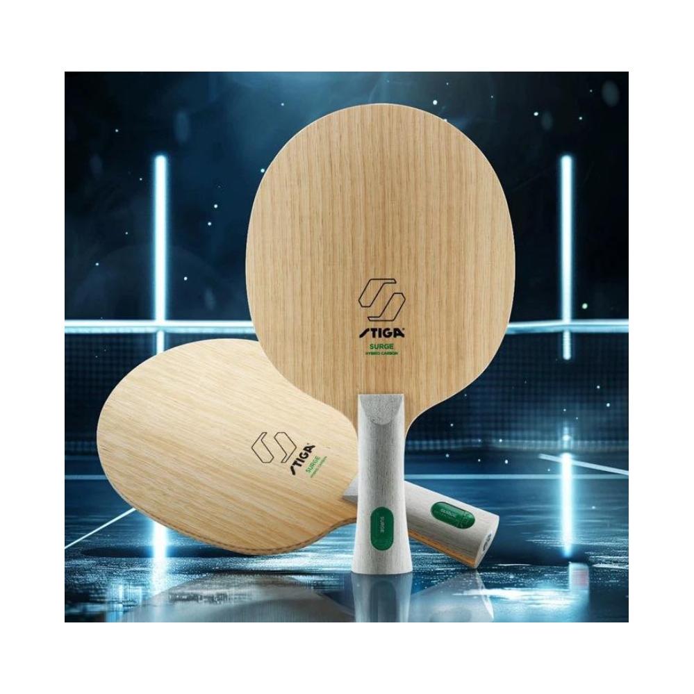 Vợt bóng bàn Stiga Surge Hybrid Carbon là một sản phẩm cao cấp của Stiga. Đây là dòng vợt có cấu trúc Inner Carbon, tương tự như các dòng vợt cao cấp như Hurricane Long 5 hoặc W968. Điều này có nghĩa là lớp sợi carbon được đặt bên trong các lớp gỗ, giúp cân bằng giữa độ kiểm soát và tốc độ.