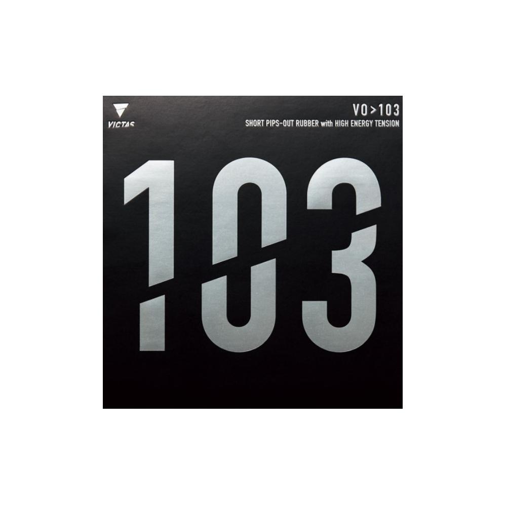 Gai công Victas 103, hay Victas VO > 103 hay VO 103 hay V0 103. Đây là gai tấn công, pimple out, gai ngắn. VO > 103 là tiêu chuẩn mới cho gai tấn công bằng pip-out đầy biến động và nguy hiểm! Sau một giai đoạn thử nghiệm và phát triển kỹ lưỡng, các chuyên gia vật liệu của VICTAS Nhật Bản đã thành công trong việc thiết kế một công cụ tấn công toàn diện thực sự thể hiện sức mạnh của nó trong mọi tình huống chơi. Miếng lót bọt biển tấn công căng thẳng năng lượng cao 40° mới của VO > 103 với hiệu ứng rất tốt mang lại khả năng kiểm soát tuyệt vời cả trong các tình huống tấn công và chơi phòng thủ. Thiết kế gai tấn công mới tối ưu hóa quá trình phát triển xoáy, đồng thời tạo ra hiệu ứng pít-tông tuyệt vời và quỹ đạo nguy hiểm khi chặn bóng.