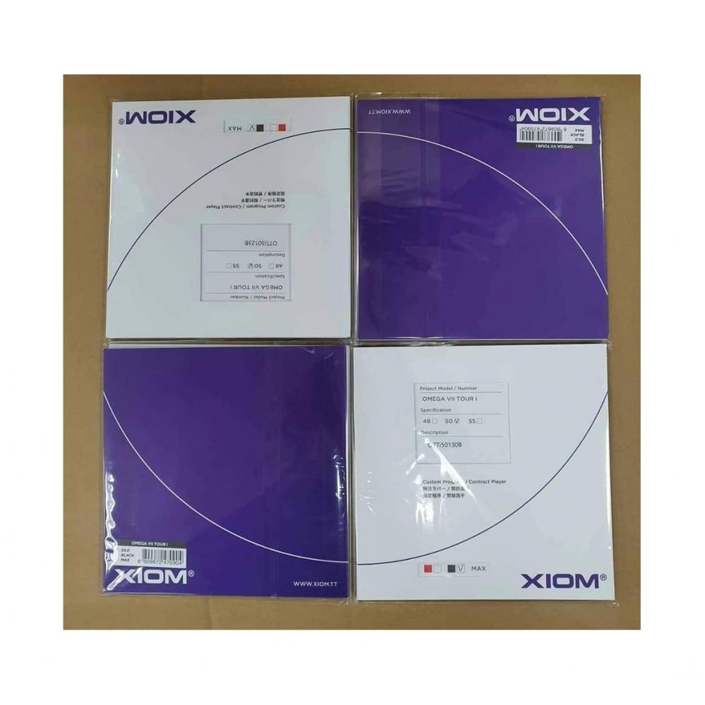 Xiom Omega Tour i, đây là phiên bản cao cấp nhất của hãng Xiom. Mặt vợt có 2 phiên bản 50 độ và 48 độ. Omega Tour i khác với các phiên bản Xiom Omega Tour thường ở phía sau mặt lót có in dòng chữ "customized i". Đây là phiên bản số lượng rất ít, chỉ dành riêng tài trợ là nhiều.